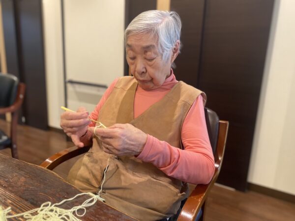 編み物に切り絵、脳トレなど、皆様和気あいあい談笑されながら制作に取り組まれております。