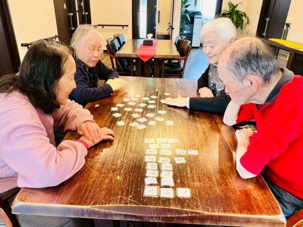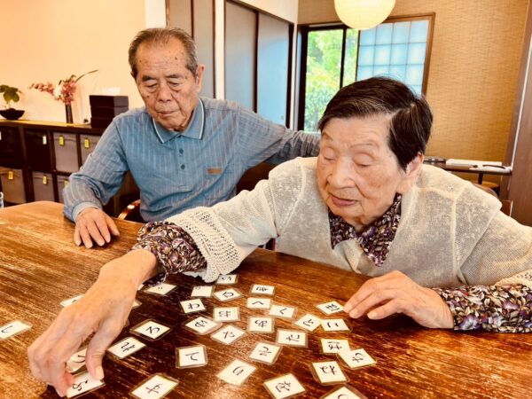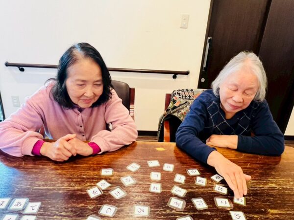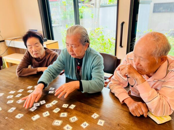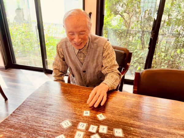 午前中の活動は、各テ-ブルごとにカ-ドを並べて言葉遊びをしたり、
