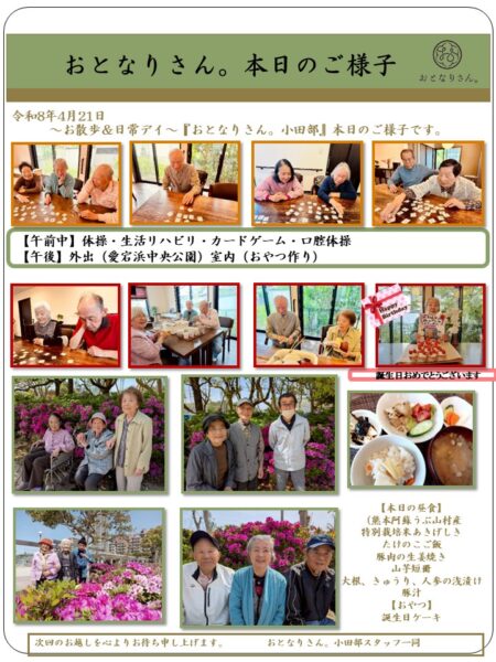 昼食後は、お盆を拭いて頂いたり食器拭きをして下さったりととても