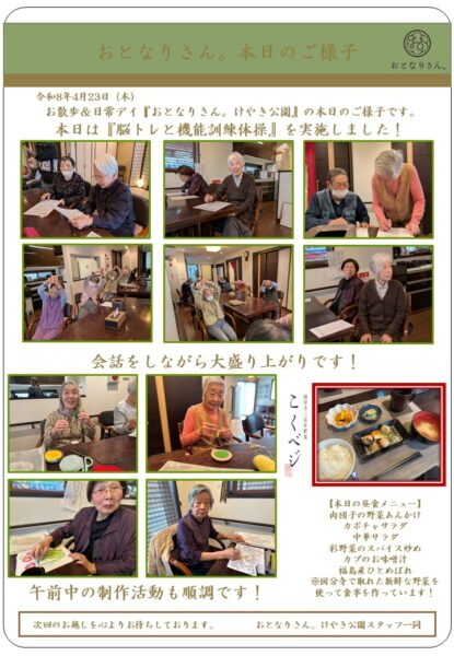 午後はあいにくの雨天でしたので、昭和クイズと、機能訓練体操を実施しました。