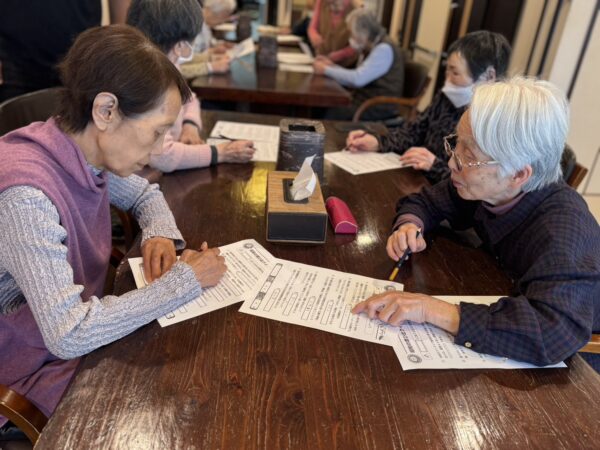 脳トレ、編み物、縫い物と多岐にわたる活動内容ですが、皆様和気あいあいと取り組まれております。