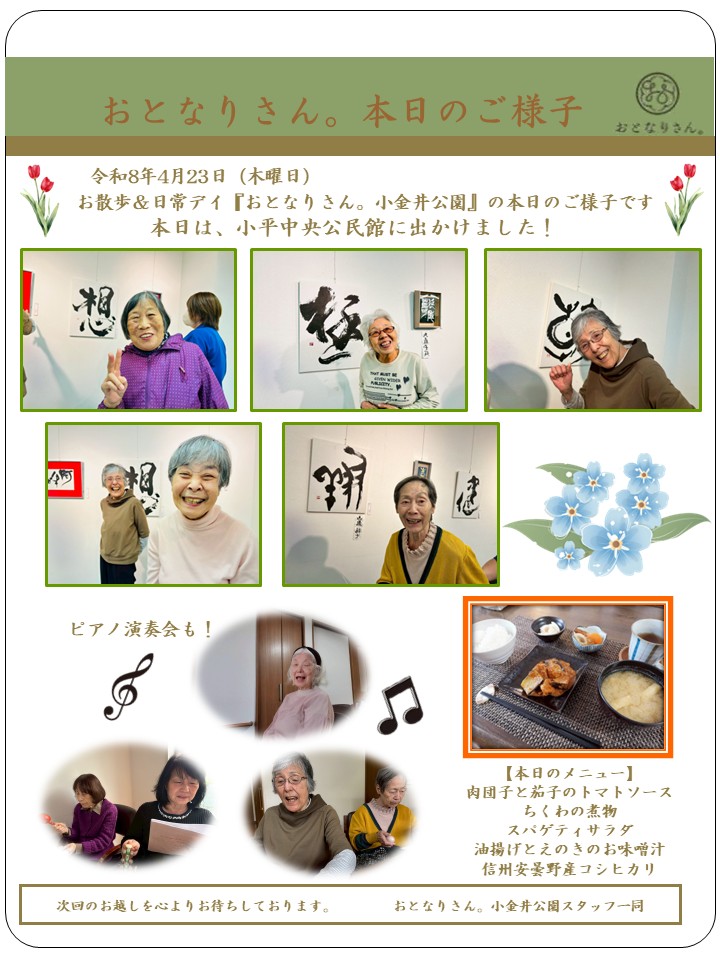明日も機能訓練を兼ねた外出に出かけましょう。