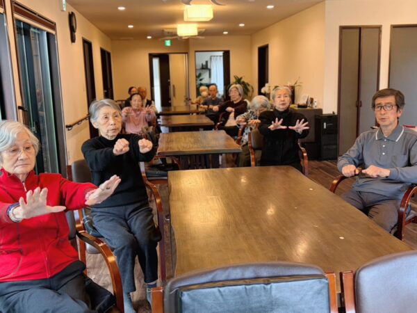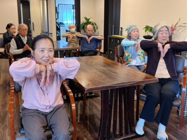 本日もおとなりさん。風に負けずに元気に体操からスタートします。