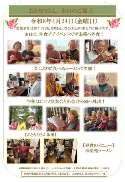 小金井市のデイサービス~お散歩&日常デイ~ おとなりさん。ひこばえ