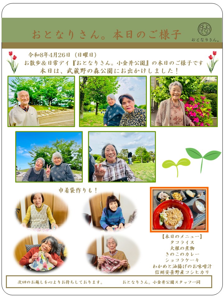お散歩&日常デイ おとなりさん。小金井公園