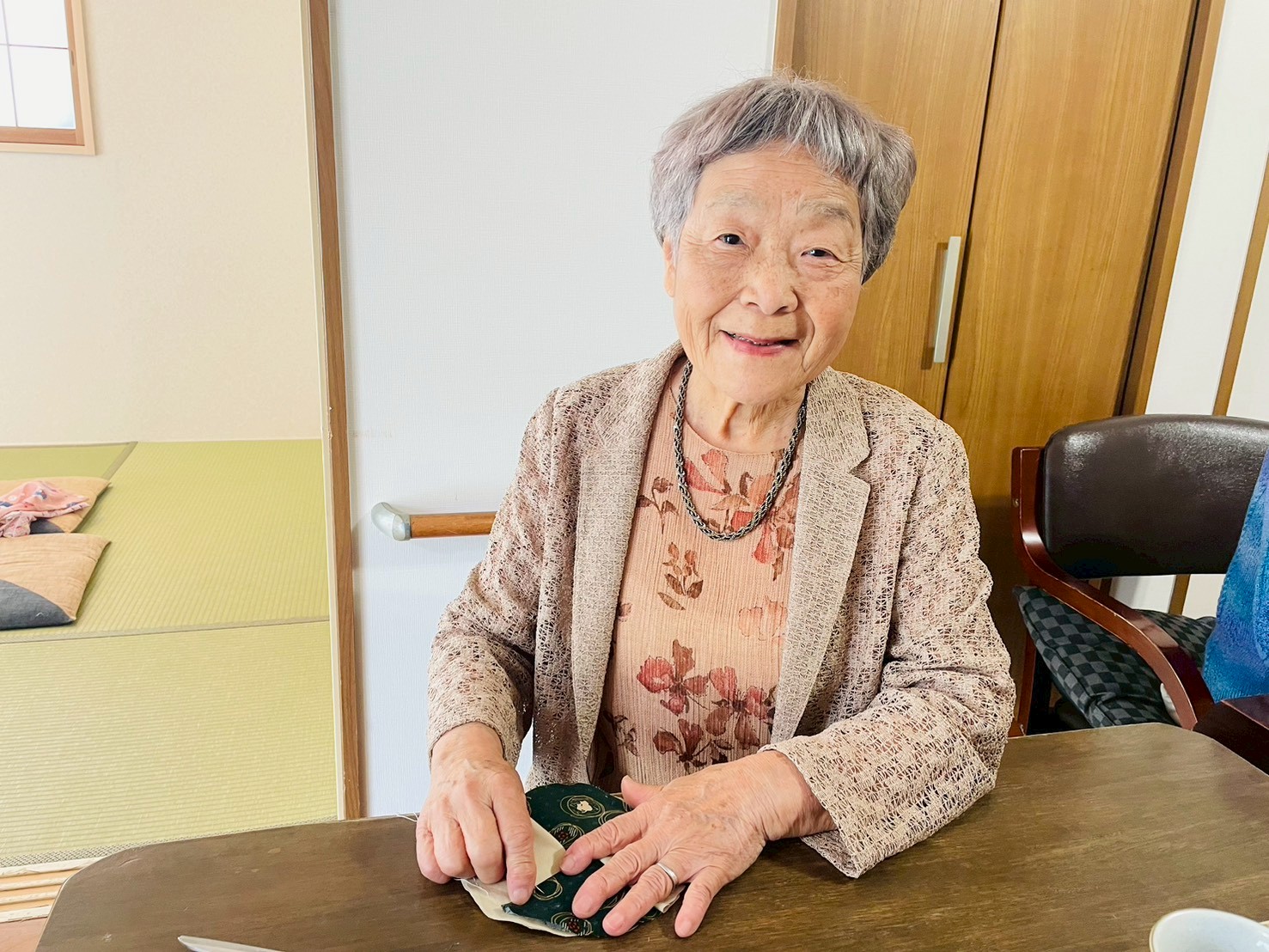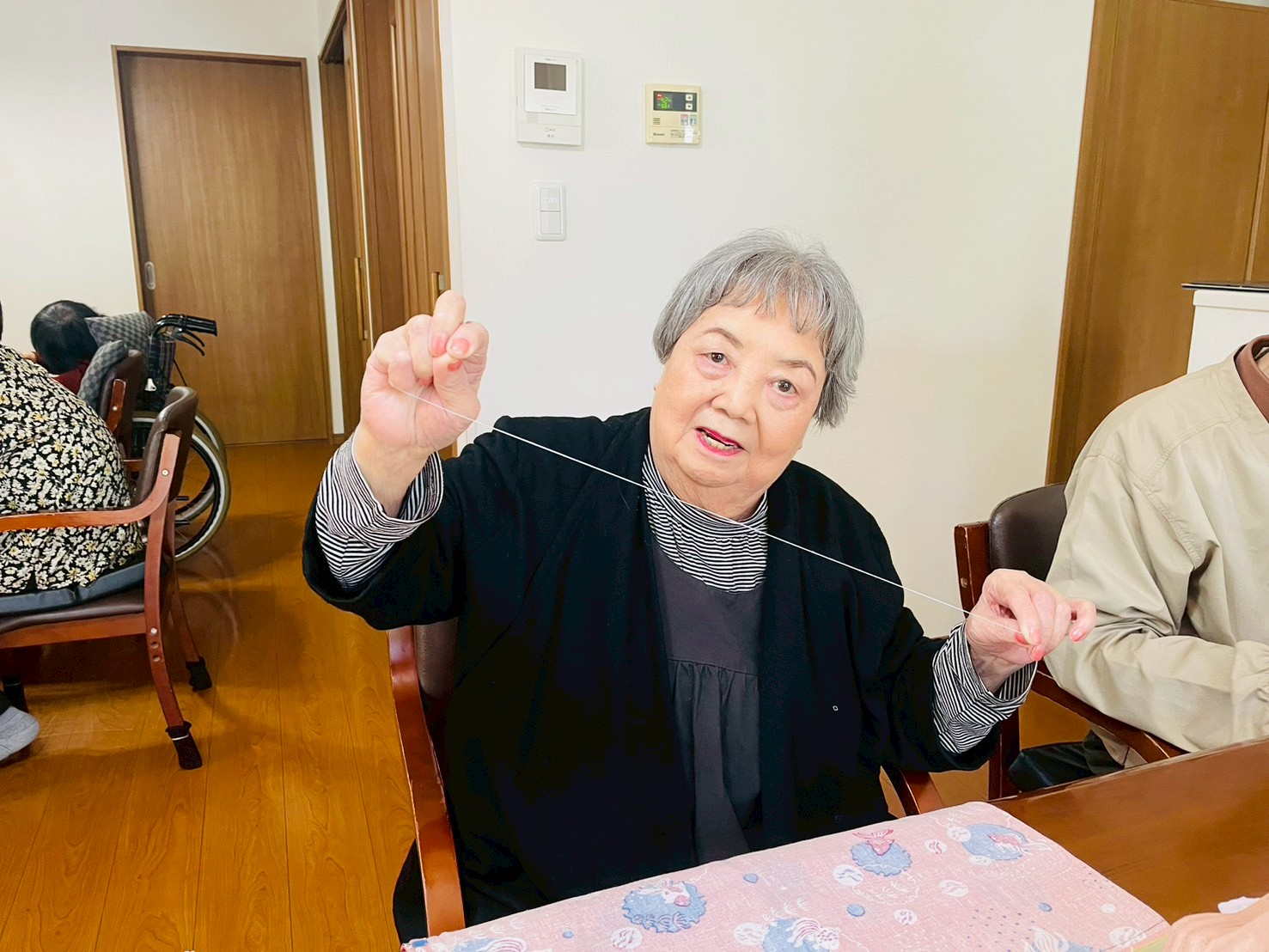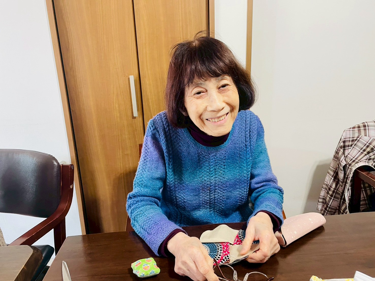 午前中は、巾着袋作りやコースターを作りました。針と糸を使い丁寧に縫っていきます。