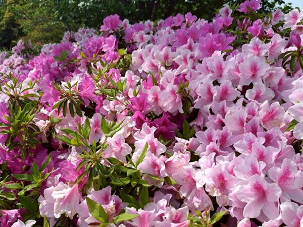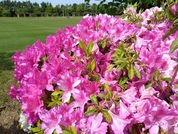 園内では、今が見頃の鮮やかなツツジが満開に咲き誇り、まるで色とりどりの絨毯を広げたような美しさでした。