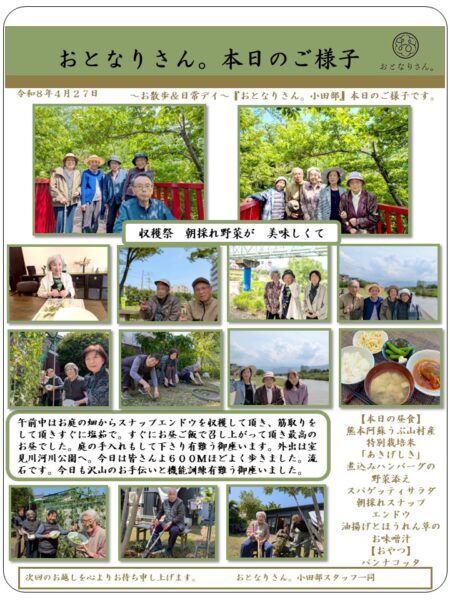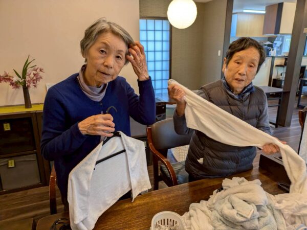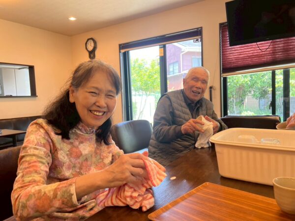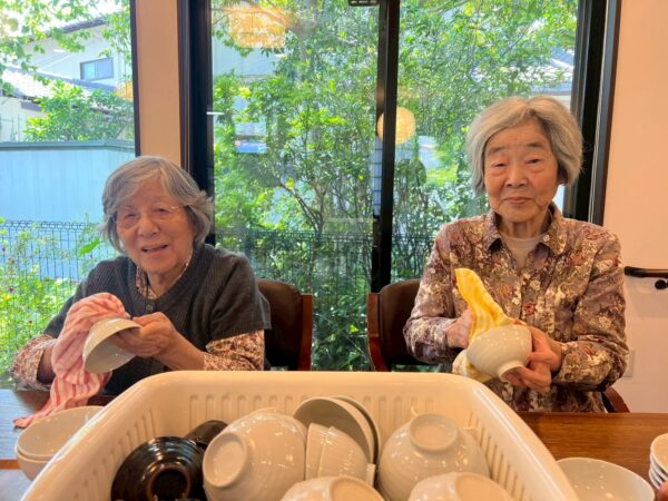 おとなりさん。体操でしっかり運動し、機能訓練として食器の片付けや洗濯物など沢山のお手伝いをして下さいました。いつも有難う御座います。