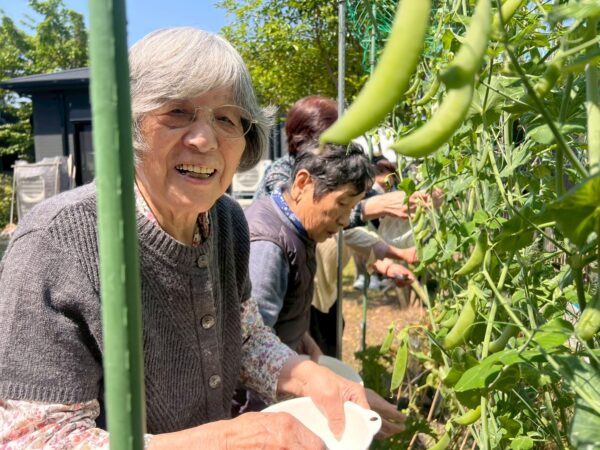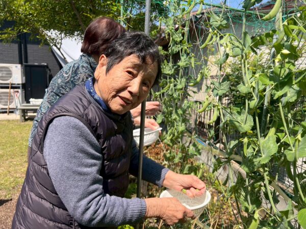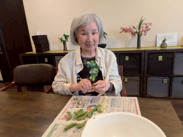午前中はお庭の畑からスナップエンドウを収穫して頂き、筋取りをして頂きすぐに塩茹し、お昼ご飯で召し上がって頂き最高のお昼でした。庭の手入れもして下さり有難う御座います。
