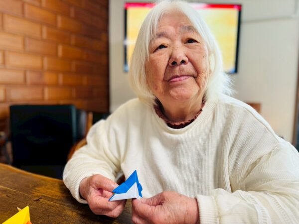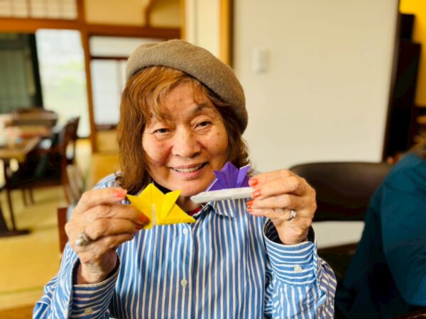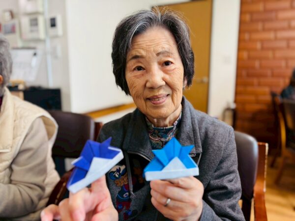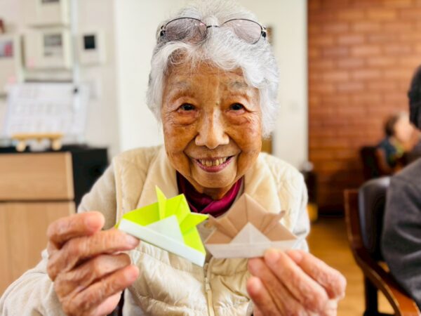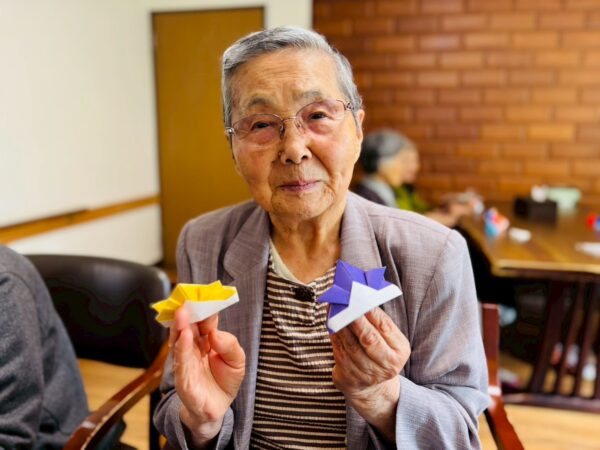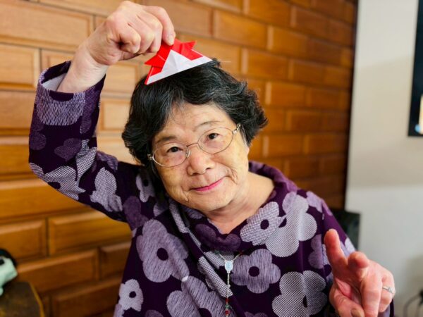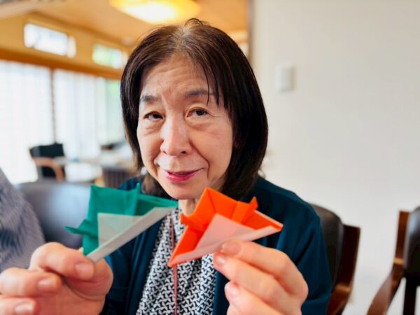 まずは飾りの兜を折っていきます。「懐かしい!」とご利用者様はどんどん折ってくださいました。