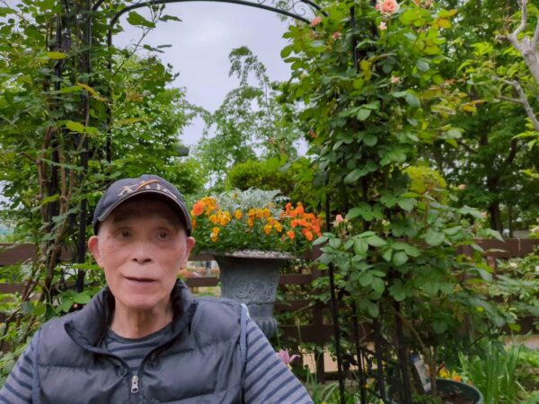 大輪のバラの前で皆様記念撮影!