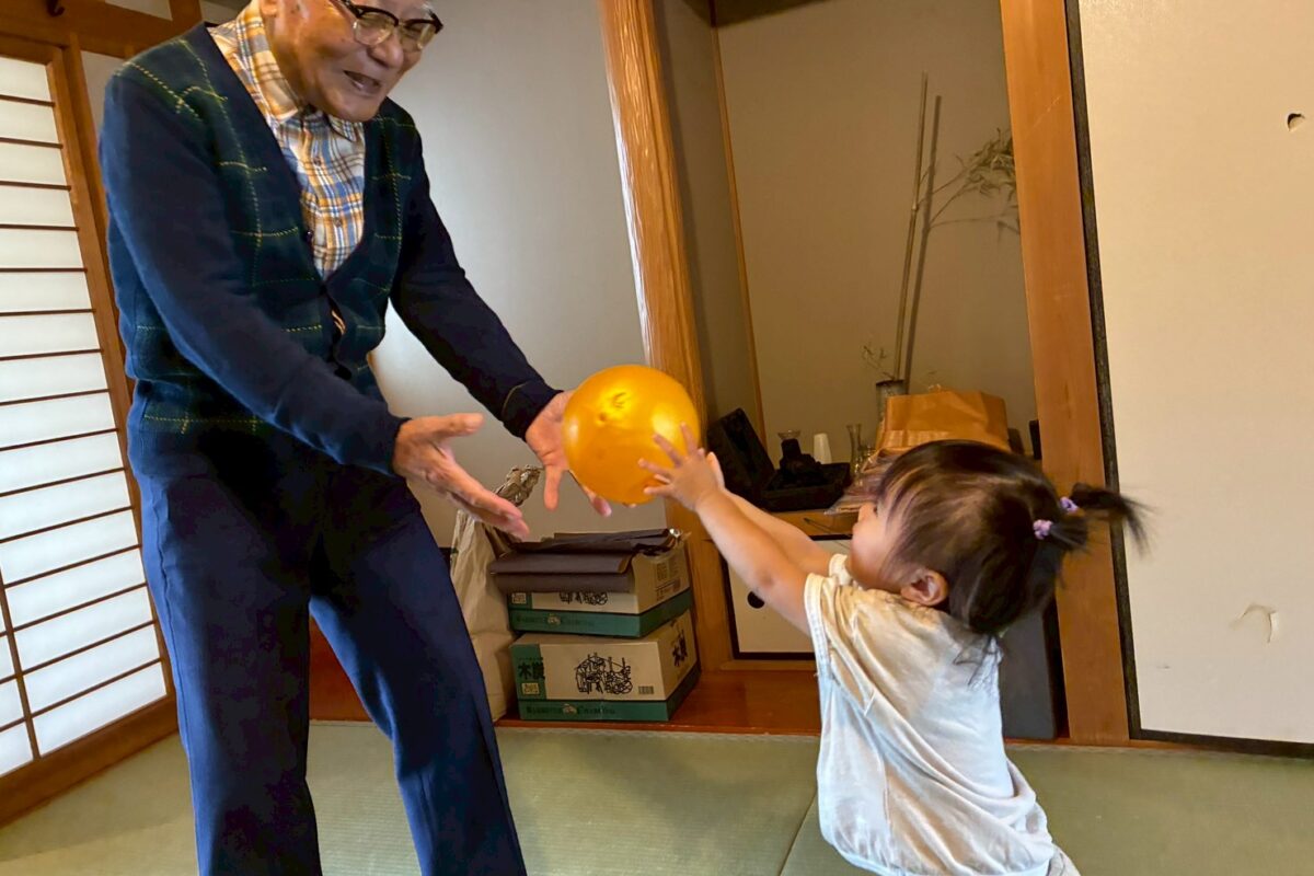 ボール受け 雛の手あたたか 秋日和