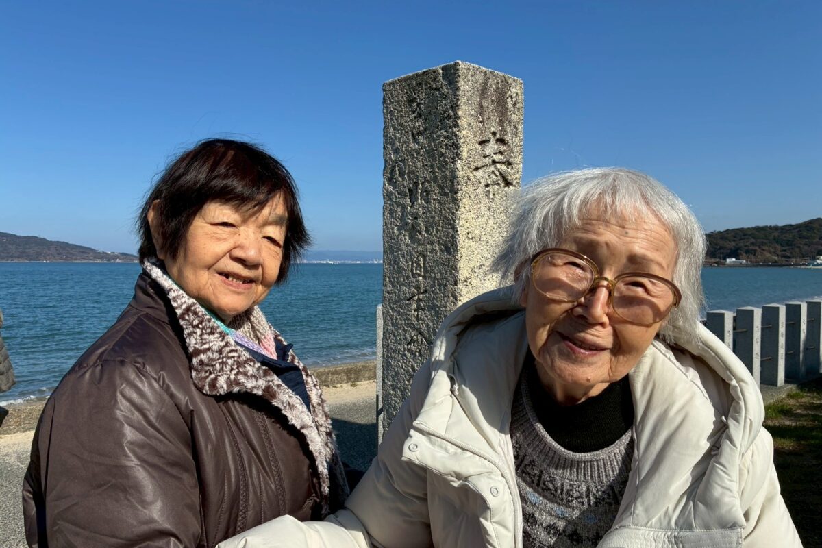 夫婦岩 久しぶりねと 腕を振る