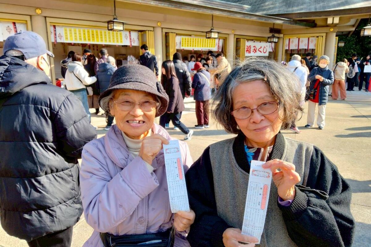 護国神社 引くおみくじ 笑みこぼれ