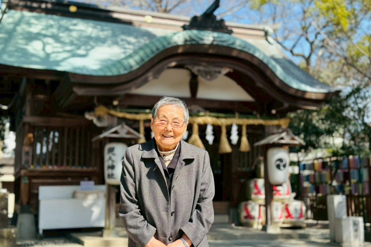 春うらら 社の前で 笑みひらく