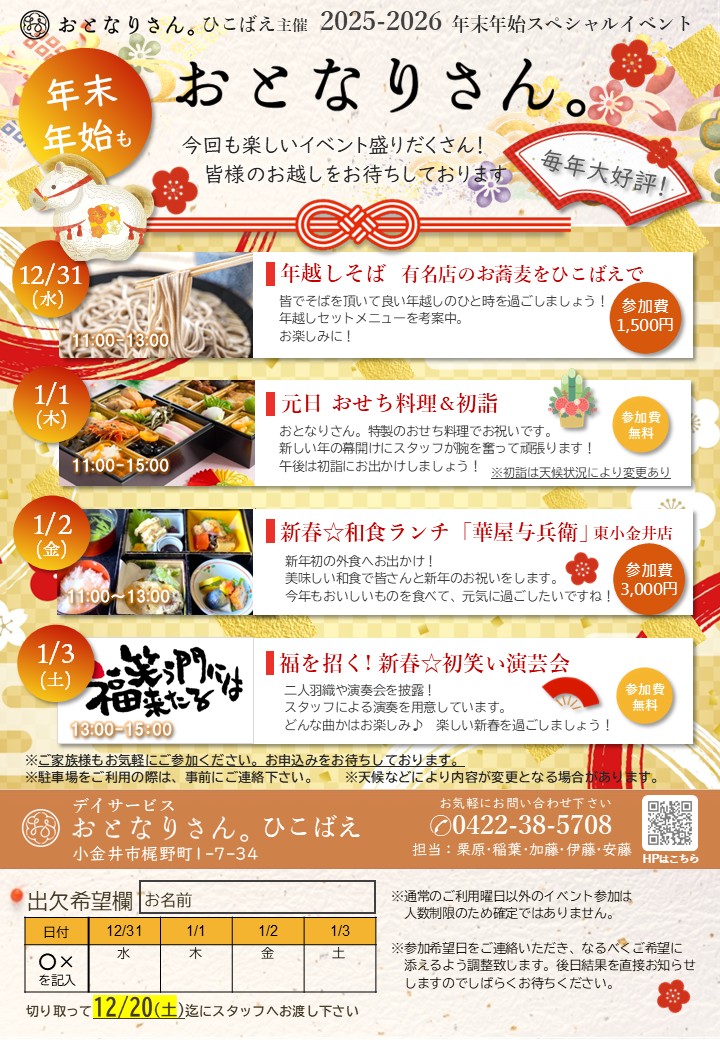おとなりさん。Event 年末年始開催