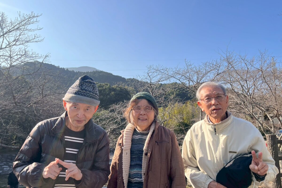 冬晴れ間 景色を眺め 歩行訓練