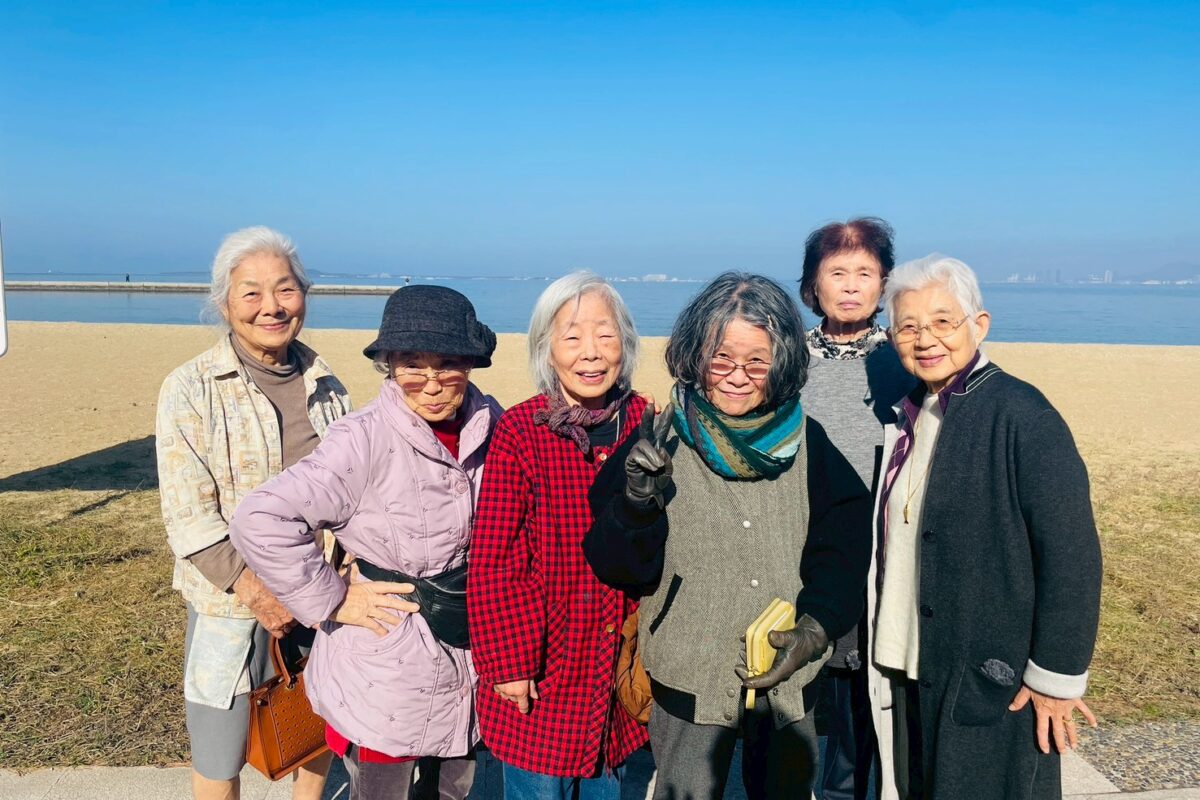 冬晴れや 潮風まとい 並ぶ笑み